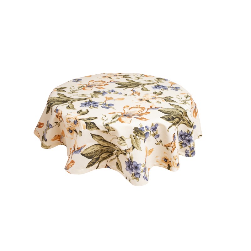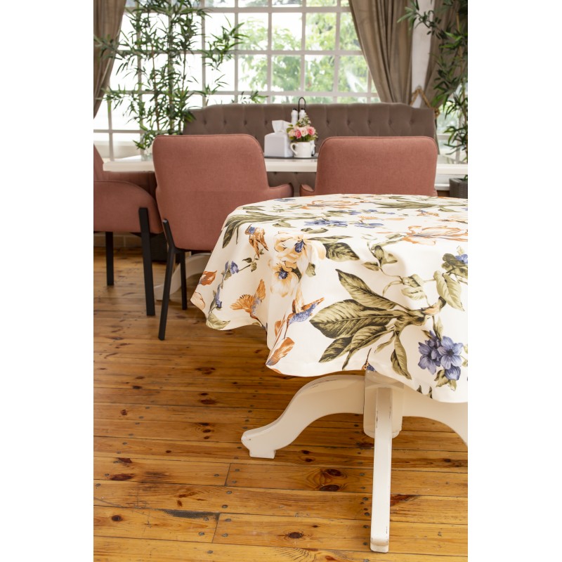 Fata de masa rotunda Bosfor Decor, Model Flori si Pasari Colibri, Bumbac teflonat